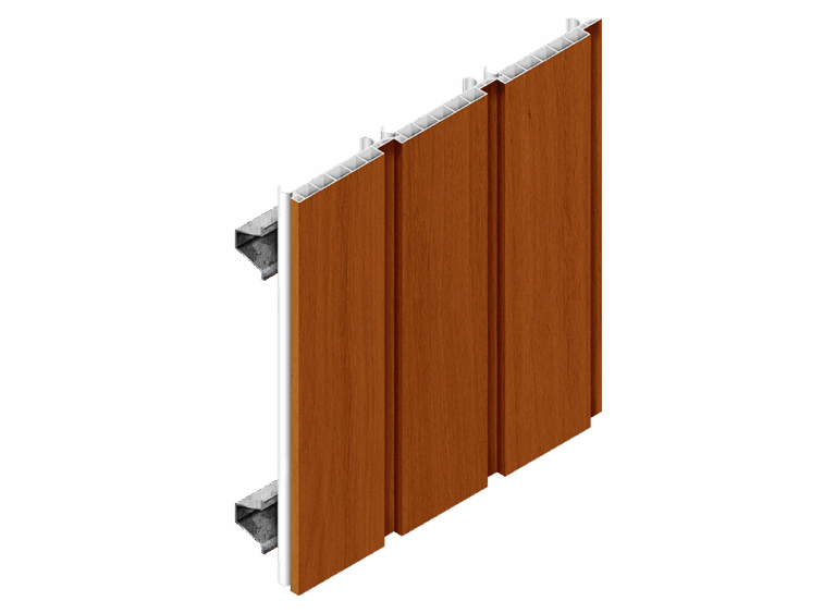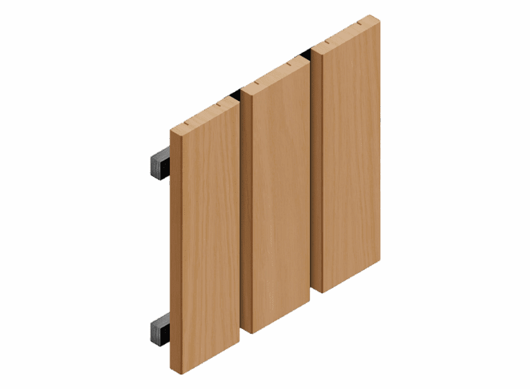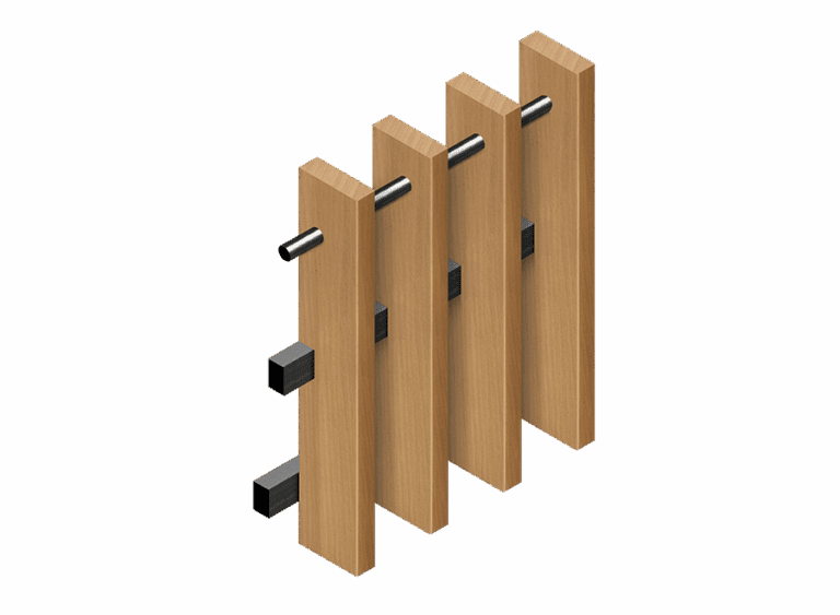 Système en forme d'échelle avec des lames de bois verticales à espacement égal. Fourni en panneaux de 1' ou 2' de large x 4', 5', 8' ou 10' de long.