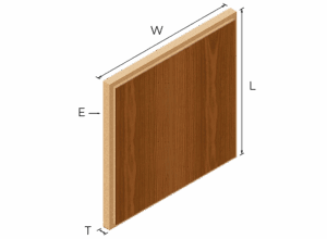 Lay-in flat veneer panels with a tegular edge and standard ceiling grid sizes.